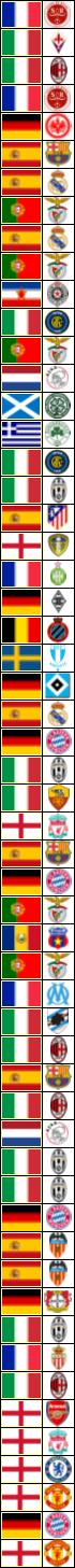 Chart detailing every club which has reached the Quarter-Finals of the European Cup & Champions League since 1955.