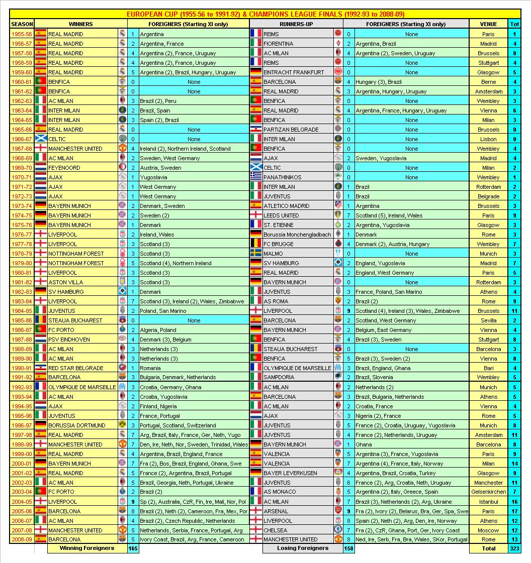 European Cup & Champions League Last 8 1955-56 to 2013-14