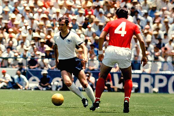 In Mexico 1970, Beckenbauer is most remembered for playing on with an obvious shoulder injury in the classic 4-3 semifinal defeat to Italy. Heavily strapped he refused to be substituted and battled throughout the full 120 minutes only to see his side lose the close contest. A win in the bronze match over Uruguay was some consolation.