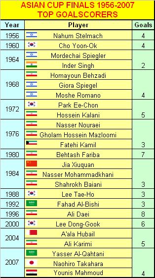 AFC Asian Cup 1956-2007 Top Goalscorers