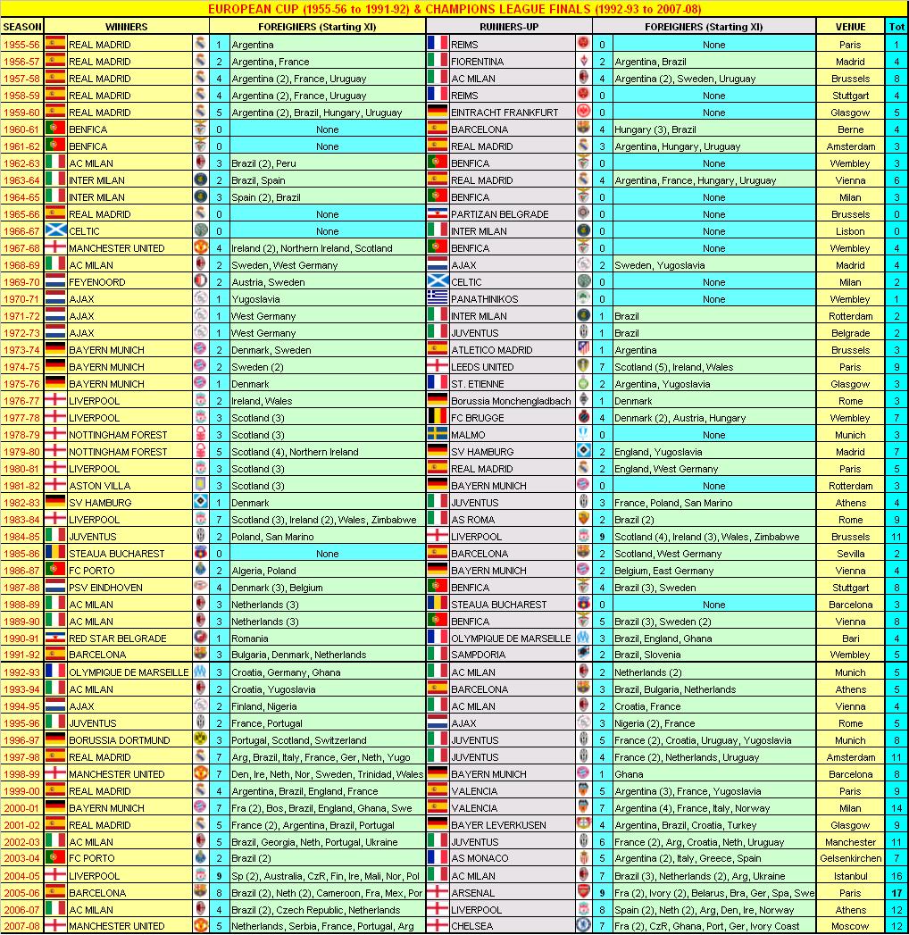 Foreign Players in the Premier League 1992-93 to 2007-08