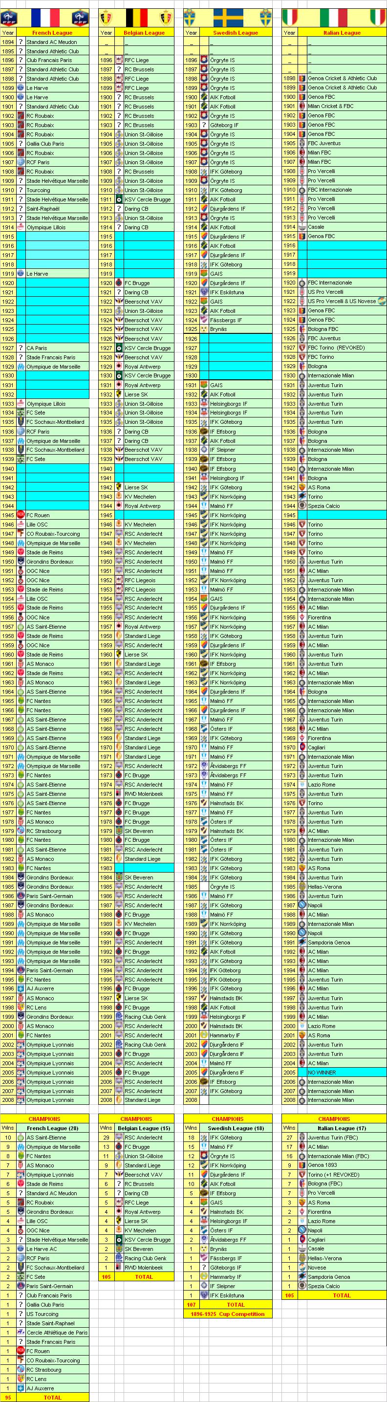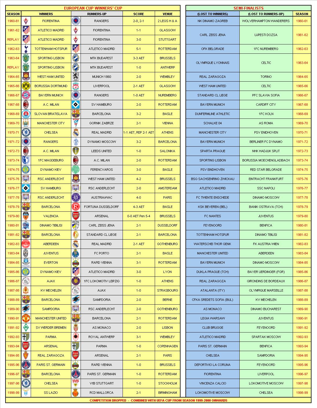 European Cup Winners' Cup Finals 1960-61 to 1998-99