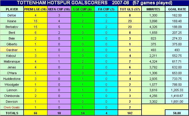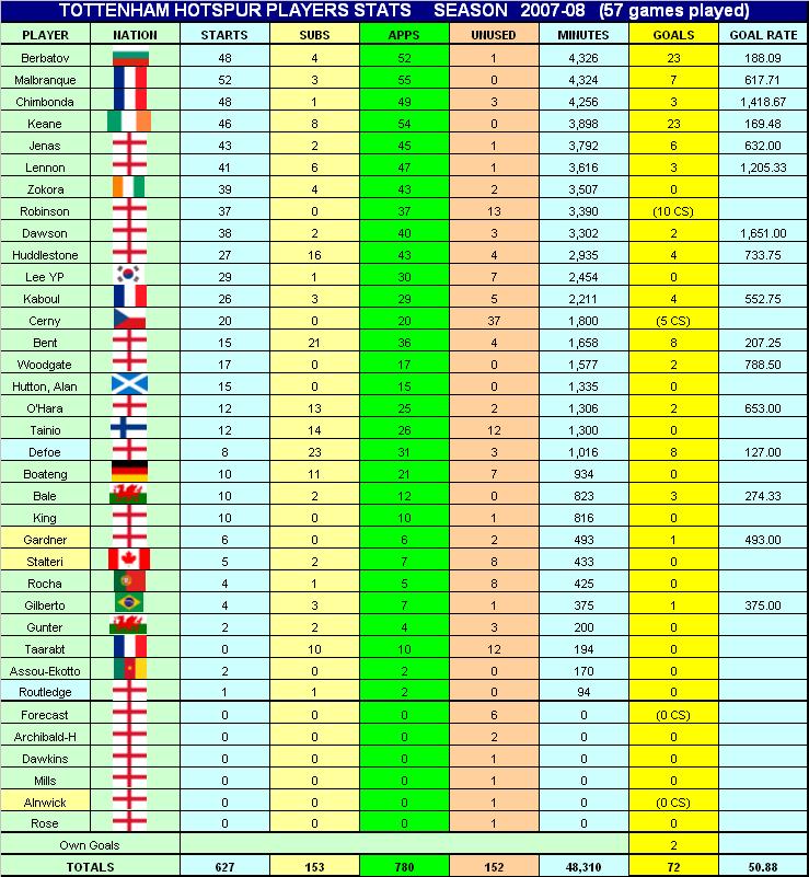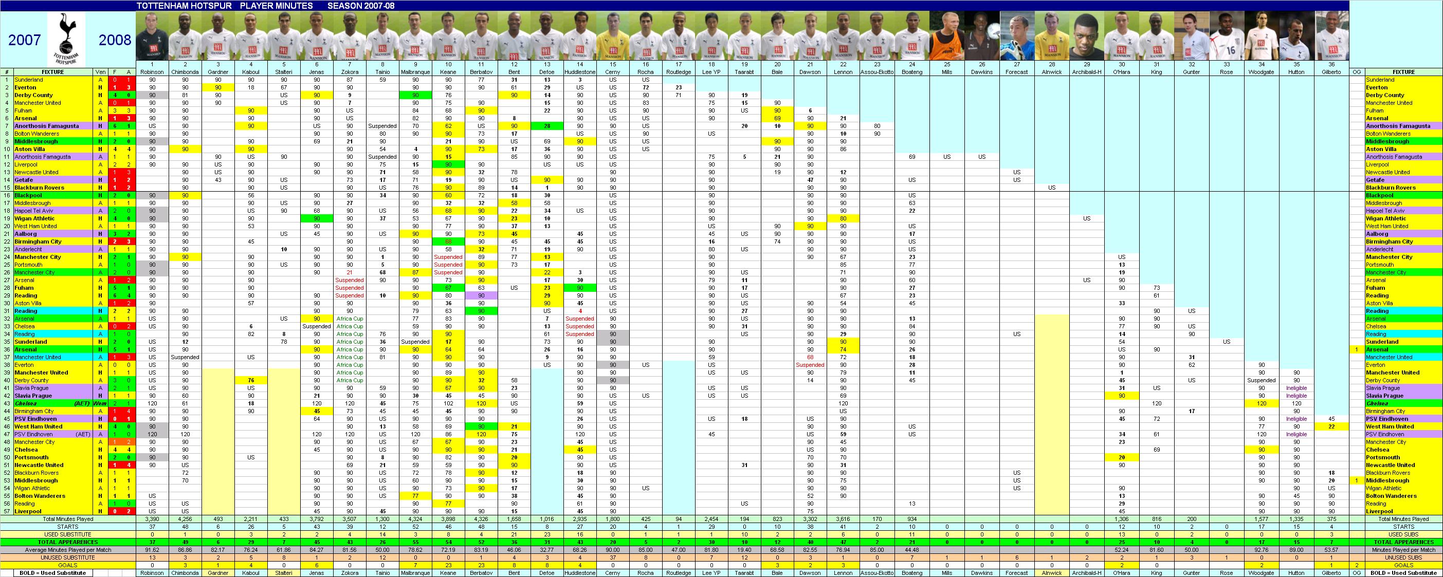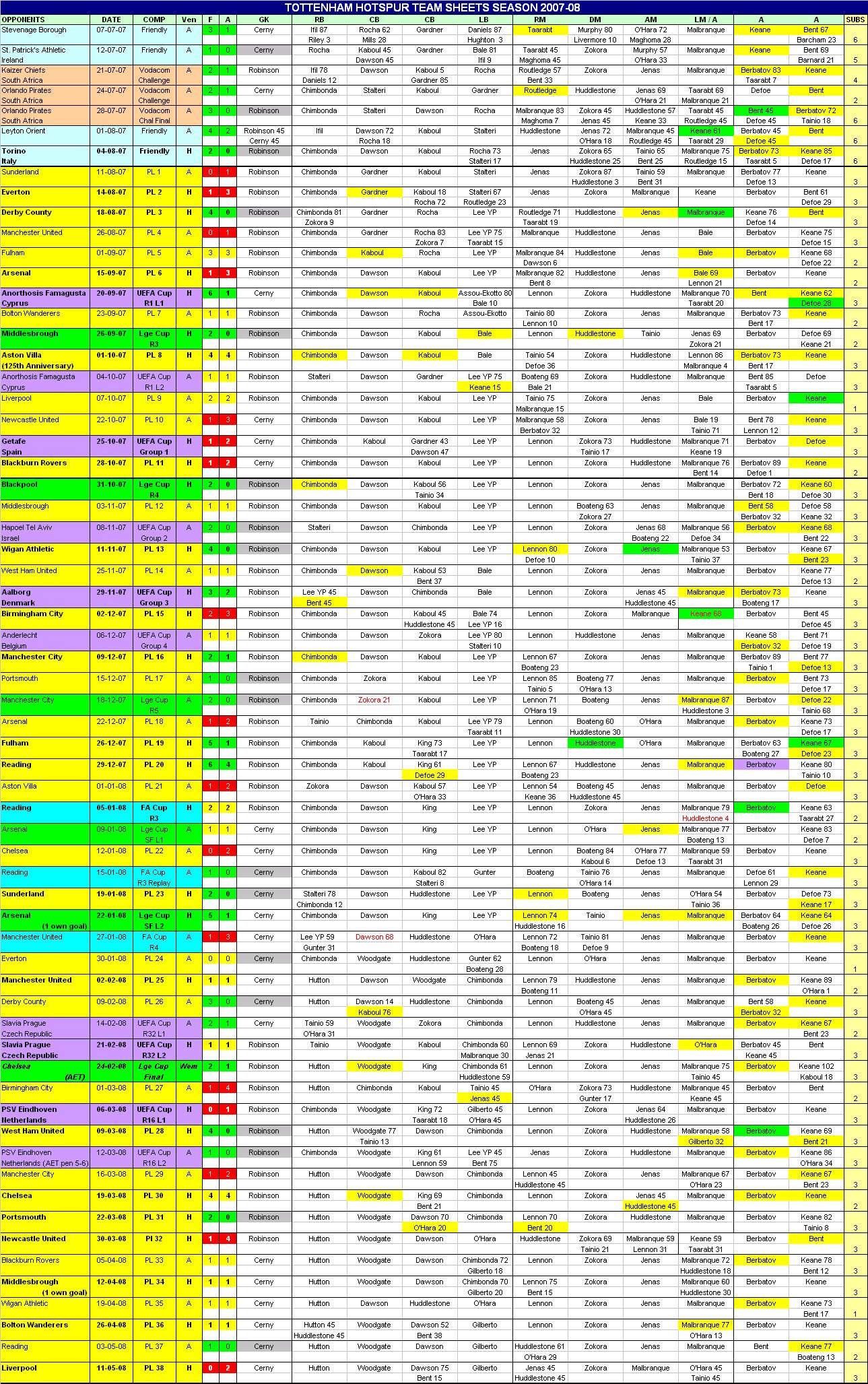 Tottenham Hotspur 2007-08 Results & Team Line-Ups