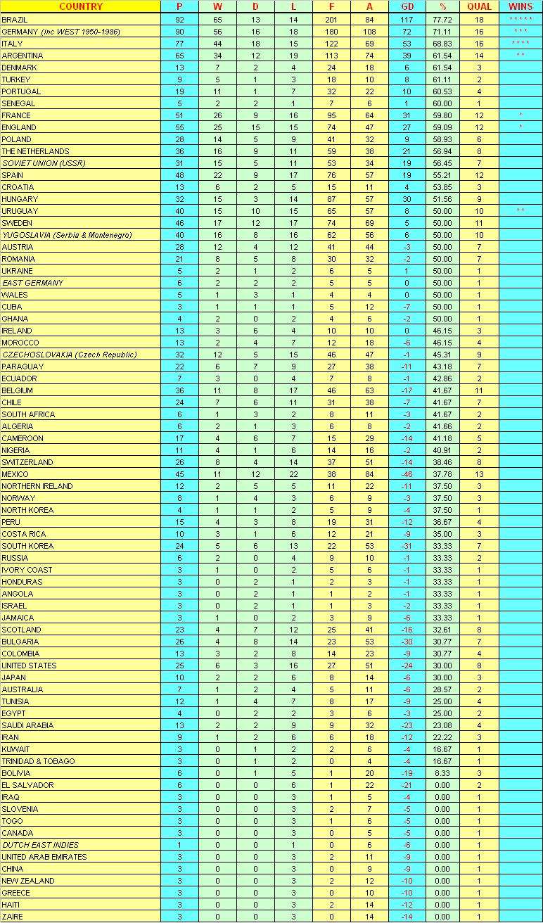 FIFA World Cup Finals 1930-2006 Progress Chart