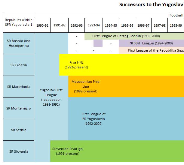 Successors to Yugoslav First League Timeline from 1990-91 Onwards