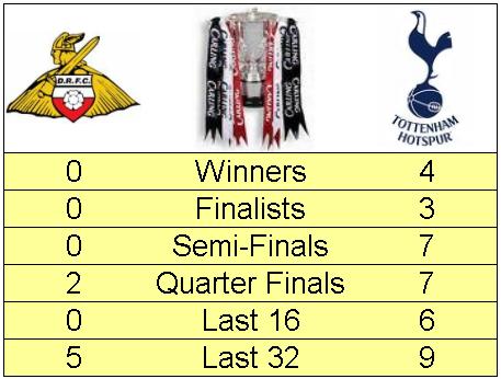 Doncaster Rovers have never progressed past the Quarter Finals (last 8) of the League Cup. Tottenham have won the competition four times and have been Finalists three times, including last season when the game with Manchester United ended in a 0-0 draw after extra time but Spurs lost on penalties.