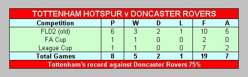 Wednesday night's match will be the ninth time Doncaster Rovers and Spurs have met. Here are the results of the previous eight games with Spurs score shown first: