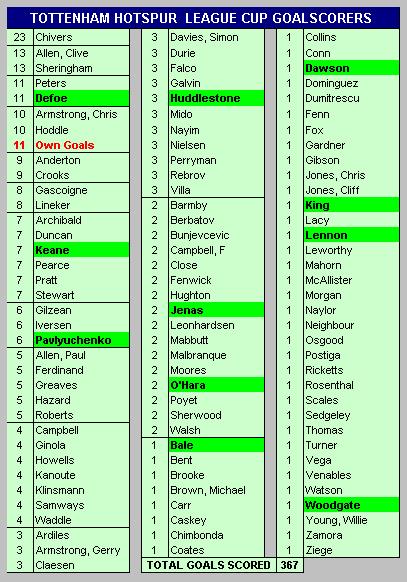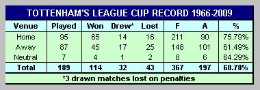 TOTTENHAM HOTSPUR'S LEAGUE CUP RECORD 1966-2009