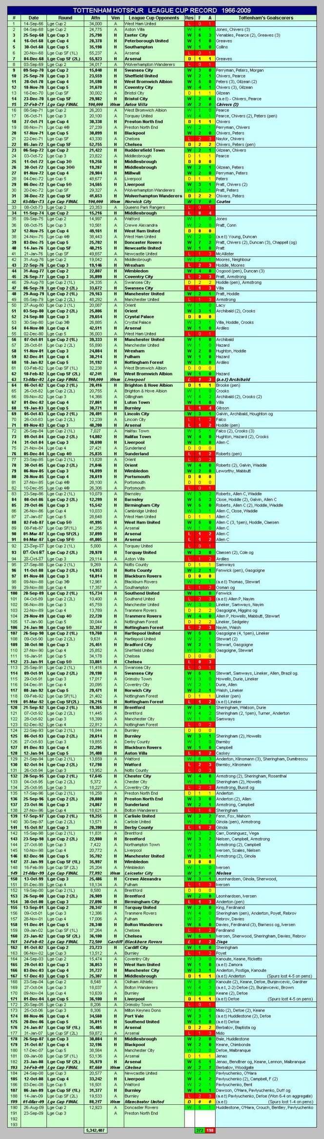 The last meeting between the two clubs was also in the League Cup with Spurs winning 4-1 on aggregate over two legs in September 1996. The teams have played each other four times altogether in the competition with Spurs winning two and drawing two matches.