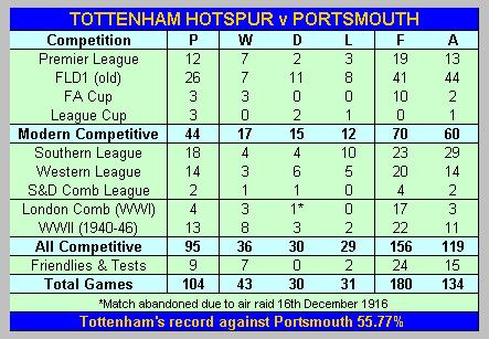 • Portsmouth and Tottenham have played each other 50 times in all competitions. Portsmouth have won 13 times, Tottenham 20 and there have been 17 draws.