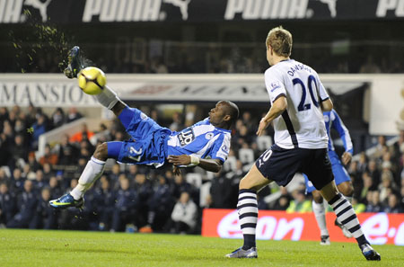 Wigan did eventually score, mainly through some weak Spurs defending, but Pavlyuchenko's super strike from outside the area in the final seconds gave the home fans the climactic finish they would have desired.