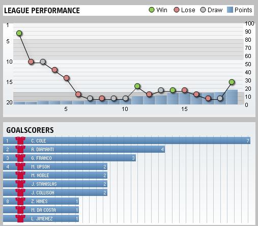 Green, Upson, Ilunga, Tomkins, Parker, Kovac, Noble (Jimenez 16), Faubert, Collison, Franco (Nouble 90+1), Alessandro Diamanti (Behrami 72)