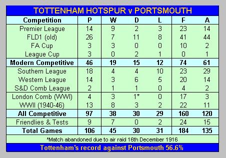 Saturday afternoon's match will be the 107th meeting between Tottenham Hotspur and Portsmouth.