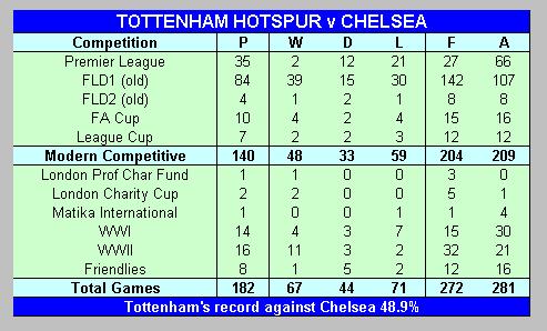 • Tottenham went an English record 32 league games without a win against Chelsea until beating them 2-1 at White Hart Lane in November 2006.